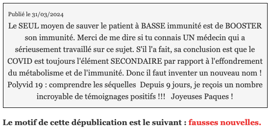 Le 31 mars 2024, mon commentaire est CENSURÉ alors que, justement, il prend VRAIMENT la défense des immunodéprimés !!!